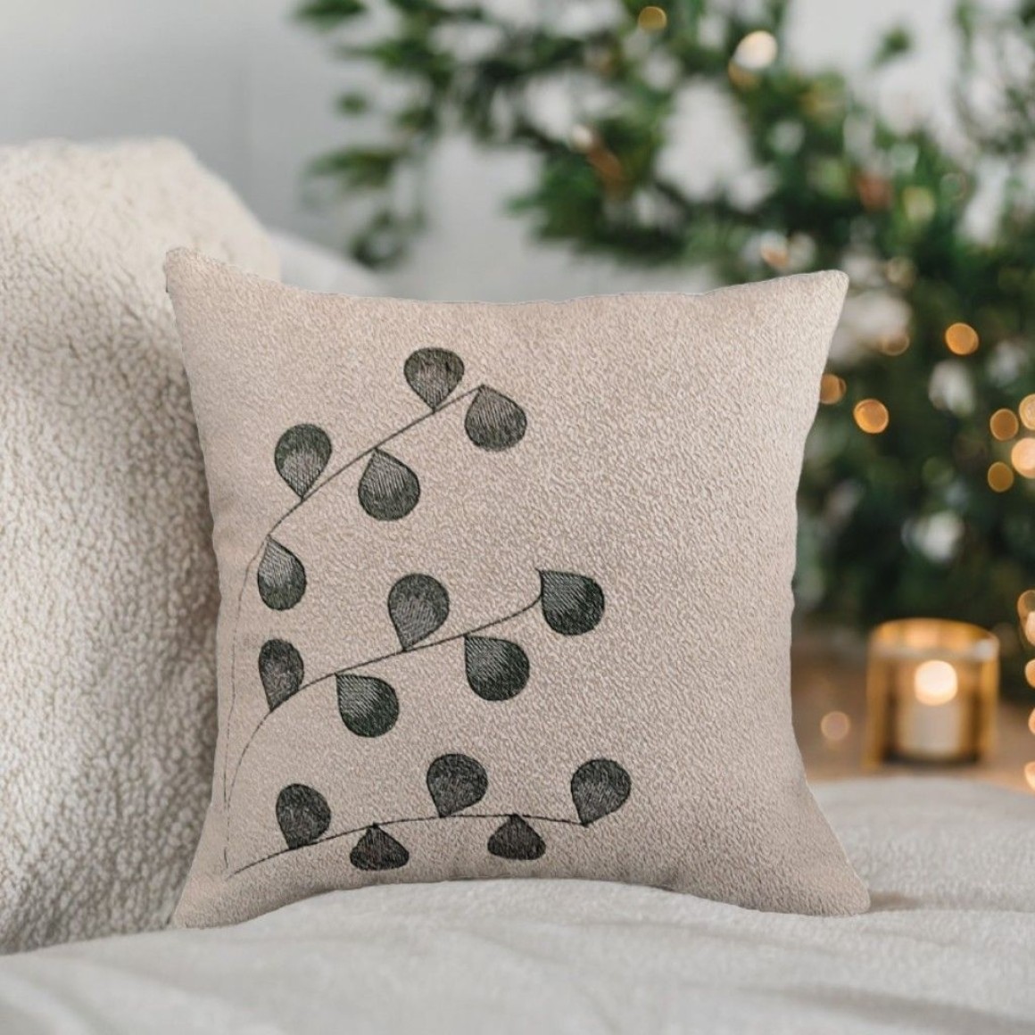 Almofada com enchimento siliconada e poliéster.