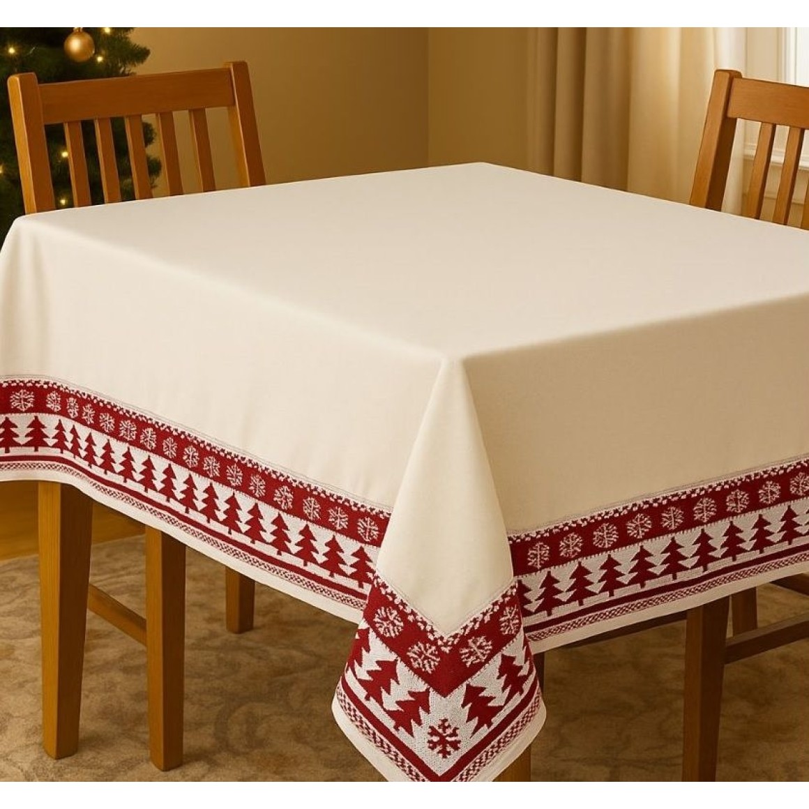 TOALHA MESA QUADRADA OXFORD C/ BARRA NATAL - 4 LUGARES